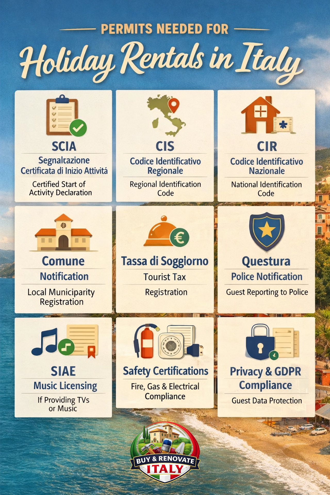 Renting a property as a short-term holiday rental in Italy involves more than just listing it online. Italy has strict regulations that vary by region, municipality, and even building type, and you need to ensure all required permits and registrations are in place. Here's a comprehensive guide for non-residents and homeowners: